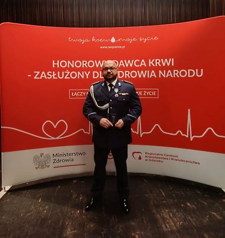 Asp. sztab. Michał Radomski – dyżurny Komendy Powiatowej Policji w Kartuzach, w dowód uznania za najpiękniejszy dar humanitarny, otrzymał od Ministra Zdrowia odznakę „Honorowego Dawcy Krwi-Zasłużony dla Zdrowia Narodu”.