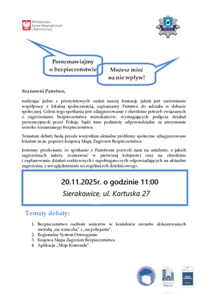 Podczas debaty omówione zostaną kwestie związane z tematem „BEZPIECZEŃSTWA SENIORÓW”.