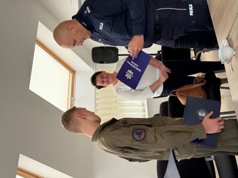 KOMENDANT POWIATOWY POLICJI W KARTUZACH PODZIĘKOWAŁ UCZNIOM, KTÓRZY POMOGLI W ZATRZYMANIU SPRAWCY PRZESTĘPSTWA.