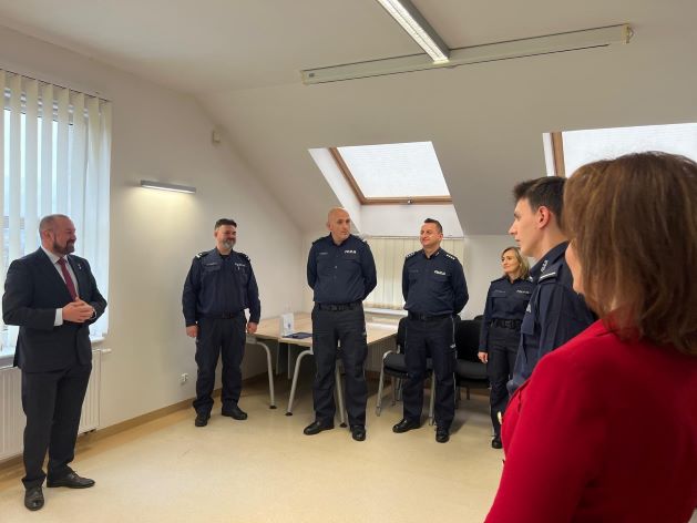 Po wręczeniu kluczyków odbyły się okolicznościowe przemówienia. Jako pierwszy głos zabrał mł.insp. Grzegorz Piechowski, który złożył przybyłym życzenia z okazji obchodzonego niedawno Święta Niepodległości oraz podziękował policjantom za ich codzienną służbę. Podziękowania komendant złożył również na ręce Pani Burmistrz za wzorową współpracę pomiędzy Policją a gminą Żukowo oraz wsparcie funkcjonariuszy z Komisariatu Policji w Żukowie. Głos zabrała również Pani Burmistrz Gminy Żukowo, która złożyła gratulacje nagrodzonym policjantom oraz w swoim przemówieniu doceniła ich trud wkładany w codzienną, często niełatwą służbę. Głos zabrał również radny Powiatu Kartuskiego Pan Waldemar Dampc, radny złożył policjantom gratulacje, a szczególne słowa uznania skierował do dyżurnego asp.sztab. Romualda Wierzby, któremu życzył między innymi sukcesów w turnieju na szczeblu ogólnopolskim.