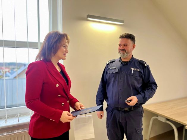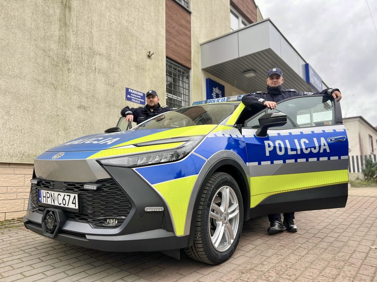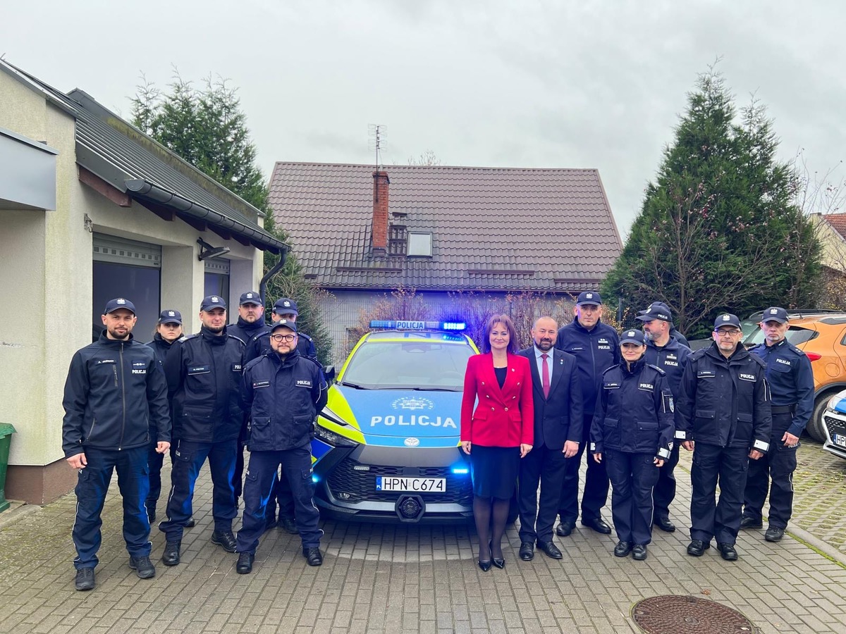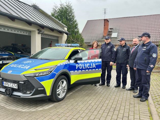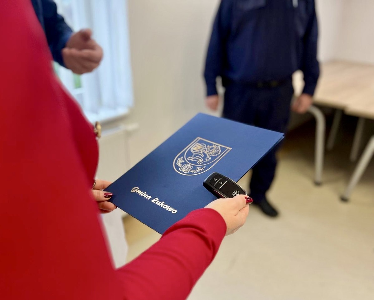 Po złożonych gratulacjach pani Burmistrz Gminy Żukowo w towarzystwie Pana Komendanta przekazała klucze do nowego radiowozu, który został przekazany na rzecz Komisariatu Policji w Żukowie. Nowy radiowóz marki Toyota C-HR MY’25 został przeznaczony dzielnicowym. Oznacza większy komfort pracy funkcjonariuszy, większą mobilność patroli, zwłaszcza w mieście, gdzie natężenie ruchu jest duże. Ekologiczny pojazd to również niższe koszty eksploatacji i mniejsze zanieczyszczenie powietrza. Zakup nowego radiowozu to efekt wspólnego projektu Komendy Wojewódzkiej Policji w Gdańsku, Urzędu Gminy w Żukowie oraz WFOŚiGW.
