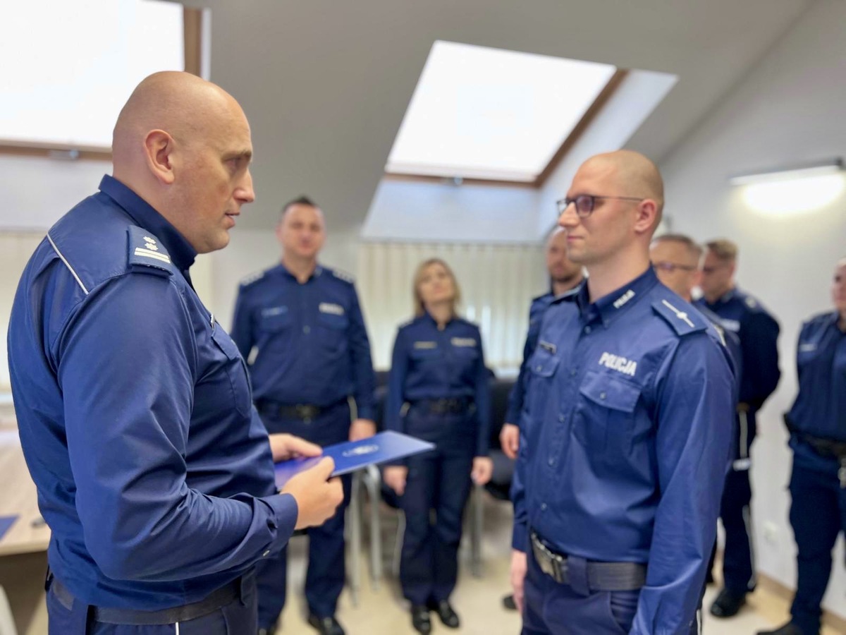 Zbiórkę rozpoczęto od wręczenia aktów mianowania na kolejne stopnie służbowe. Na stopień sierżanta Policji awans otrzymali: st.post. Filip Cirocki oraz st.post. Dominika Gorlikowska. Na stopień młodszego aspiranta Policji awans otrzymał sierż.sztab. Kamil Kęsicki.