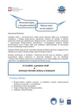Zapraszamy na debatę społeczną o bezpieczeństwie seniorów.